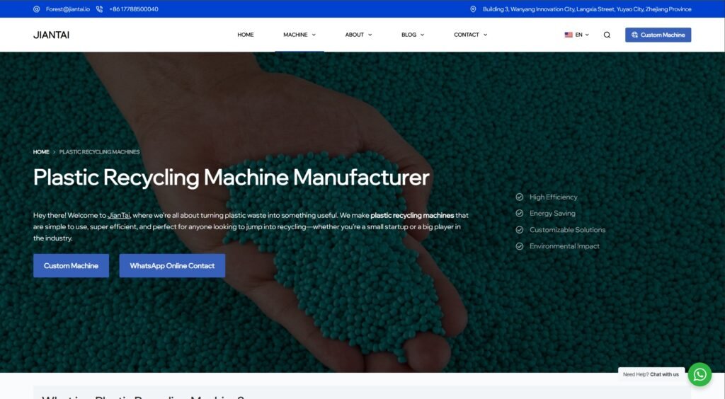 These top plastic recycling machine manufacturers of 2025 change the game. They fight plastic pollution with creativity and tech. You can help by sorting trash and using recycled items. However, always choose trusted brands like JianTai for the best results. Together, we protect our planet! Which manufacturer will you try first? Share your thoughts and search for “best plastic recycling machines 2025” to learn more.